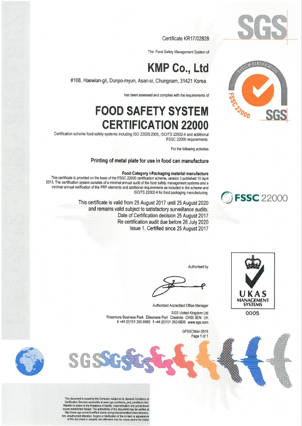 KMP FSSC22000 인증획득