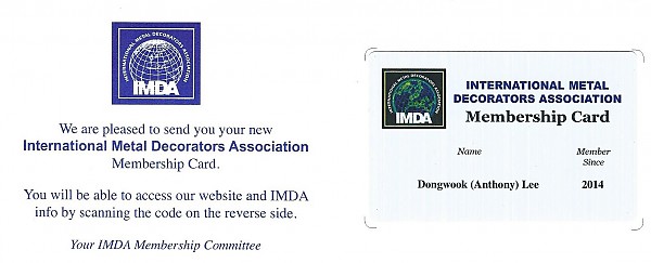 KMP주식회사는 전세계 금속인쇄인들과 정보교류와 사업증진을 위해 세계 금속인쇄협의회(International Metal Decorators Association) 멤버쉽을 획득하였습니다.